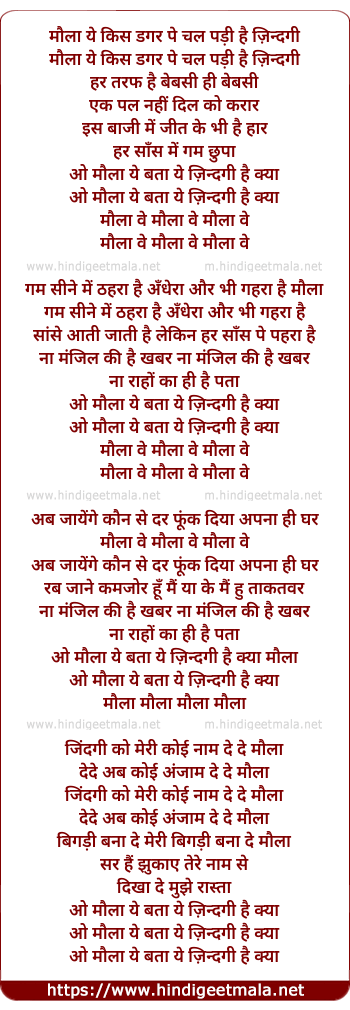 Lyrics of O Maula Yeh Bata Yeh Jindagi Hai Kya - ओ मौला ये बता ये ज़िन्दगी है क्या