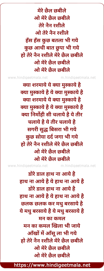 Lyrics of O Mere Chail Chabili Tere Nain Rasile - मेरे छैल छबीले