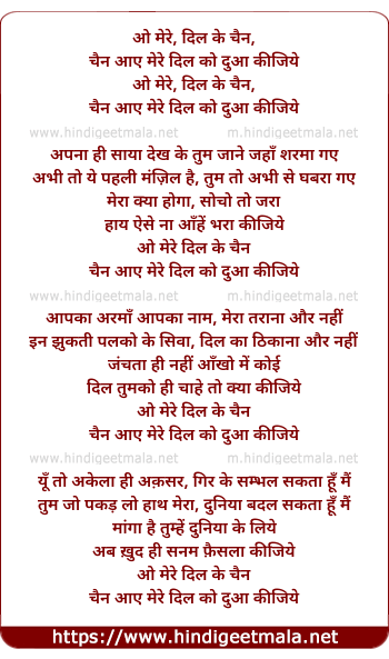 Lyrics of O Mere Dil Ke Chen, Chen Aaye Mere Dil Ko Duaa Kijiye - ओ मेरे दिल के चैन, चैन आये मेरे दिल को दुआ कीजिये