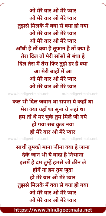 Lyrics of O Mere Yaar O Mere Pyar - ओ मेरे यार ओ मेरे प्यार