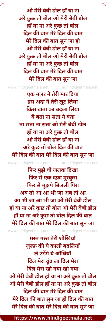 Lyrics of O Meri Baby Doll Ha Ya Na Are Kuch To Bol - ओ मेरी बेबी डोल हाँ या ना अरे कुछ तो बोल