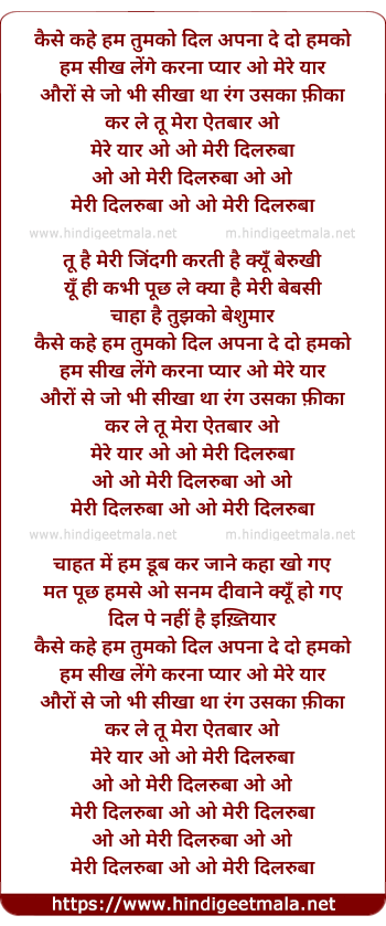 Lyrics of O Meri Dilrubaa - कैसे कहे हम तुमको दिल अपना दे दो हमको