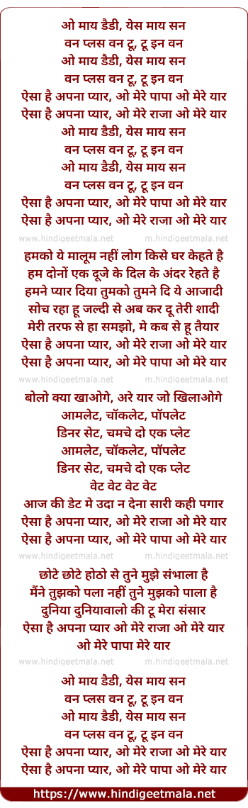Lyrics of O My Daddy Yes My Son - ओ माय डैडी येस माय सन
