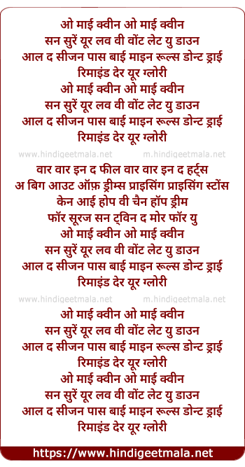 Lyrics of O My Queen - ओ माई क्वीन ओ माई क्वीन