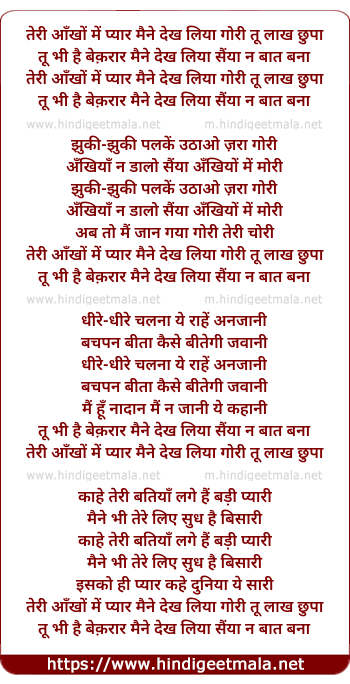 teri aankho me pyar maine dekh liya gori tu laakh chhupa