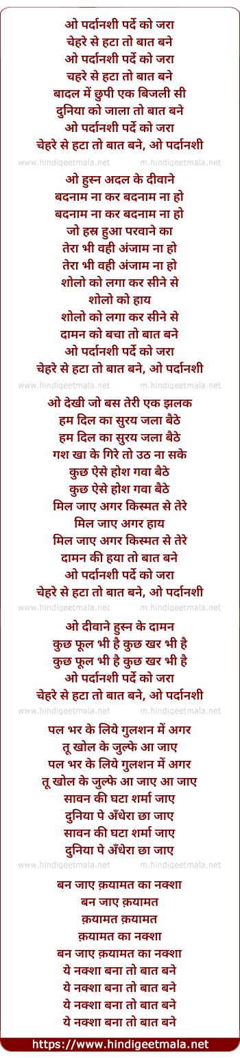 Lyrics of O Pardanashi Parde Ko Zara Chehre Se Hata To Baat Bane - ओ पर्दानशी पर्दे को जरा चेहरे से हटा तो बात बने