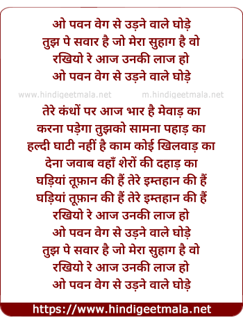 Lyrics of O Pavan Veg Se Udane Vaale Ghode - ओ पवन वेग से उड़ने वाले घोड़े