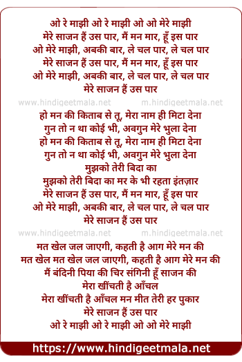 Lyrics of O Re Maajhi, Mere Saajan Hain Us Paar - ओ रे माझी, मेरे साजन है उस पार