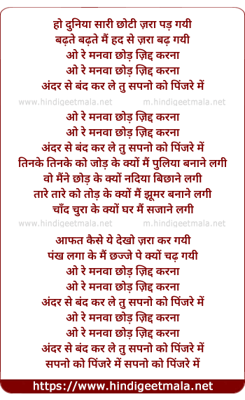 o re manwa chhod zidd karna o re manwa chhod zidd karna