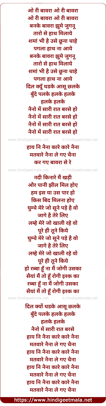 Poetic Translation - Lyrics of O Ri Bawara - ओ री बावरा