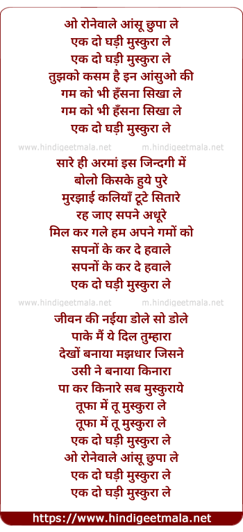 Lyrics of O Ronewale Aansu Chipaa Le - ओ रोनेवाले आंसू छुपा ले