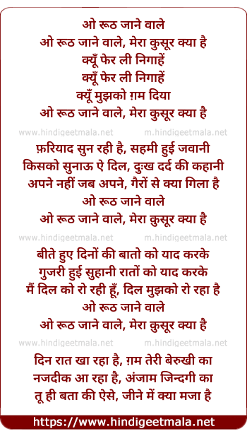 Lyrics of O Ruth Jane Wale Mera Kasur Kya Hai - ओ रूठ जाने वाले