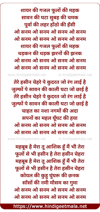 Lyrics of O Sanam - शायर की गजल फूलों की महक
