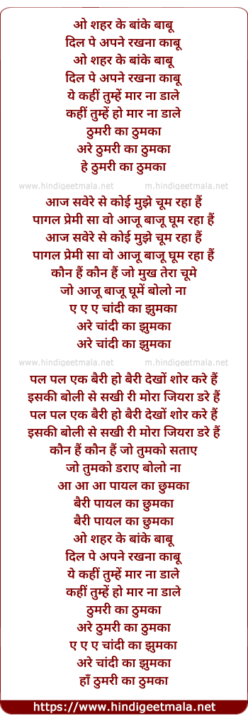 Lyrics of O Shehar Ke Banke Babu - ओ शहर के बांके बाबू