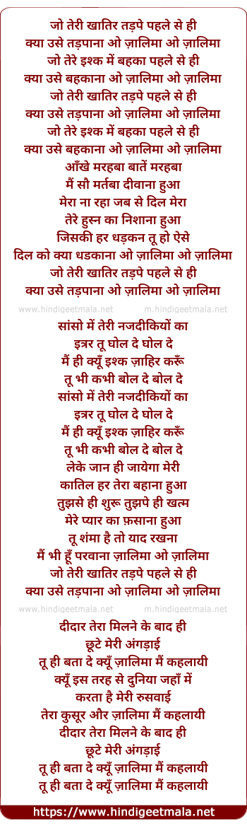 Lyrics of O Zaalima - जो तेरी खातिर तड़पे पहले से ही