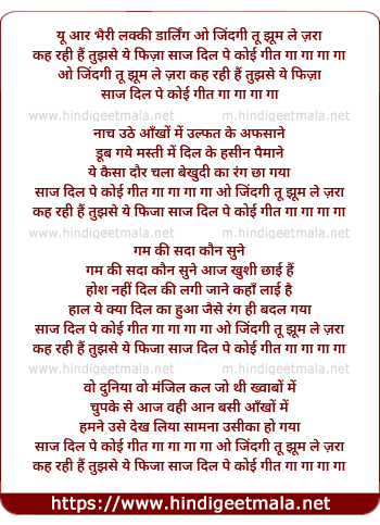 saze dil pe koi git ga ga ga ga o zindagi tu jhum le zara