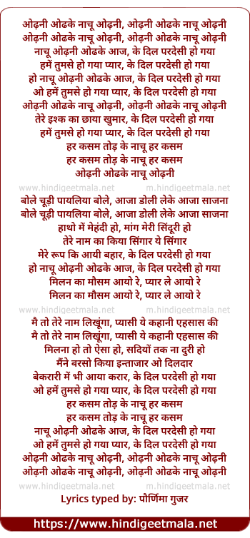 ho naachu odhani odhake aaj, ke dil pardesi ho gaya