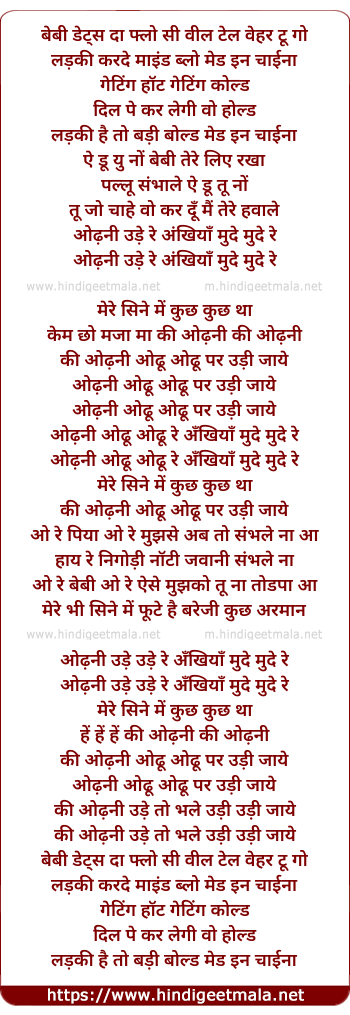 Lyrics of Odhani Ude Ude Re - ओढ़नी उड़े उड़े रे
