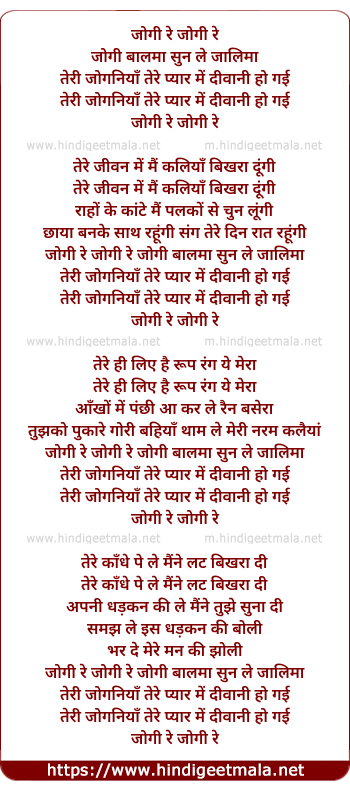 Lyrics of Jogi Balma Sun Le Zalima - जोगी बालमा सुन ले जालिमा