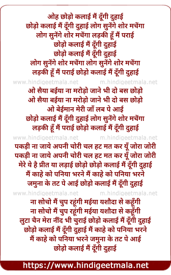 Lyrics of Oh Chhodo Kalai Mai Dungi Duhai - ओह छोड़ो कलाई मैं दूँगी दुहाई