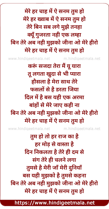 Lyrics of Oh Mere Hero - Unplugged - मेरे हर चाह में ऐ सनम तुम हो