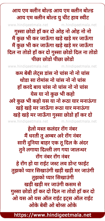 Lyrics of Oh No Gussa Chodo - ओह नो गुस्सा छोडो