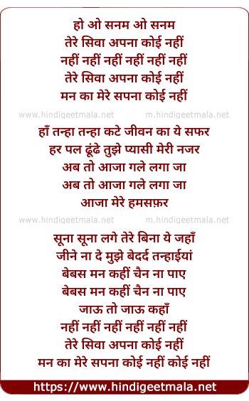 Lyrics of O Sanam Tere Siva Apna - ओ सनम तेरे सिवा अपना