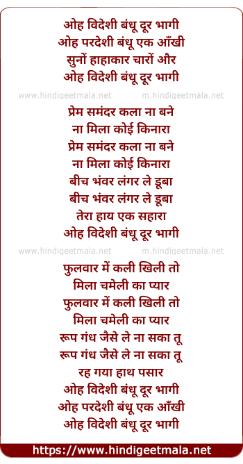 Lyrics of Oh Videsi Bandhu - ओह विदेशी बंधू