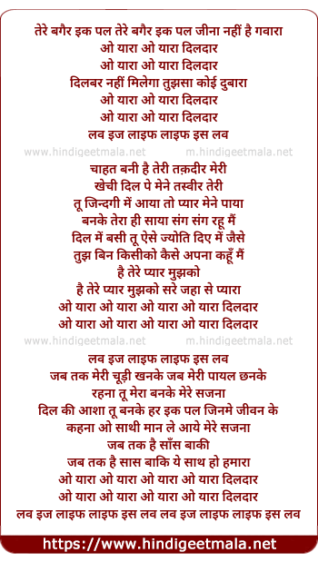 Lyrics of Oh Yara Dildara - ओ यारा दिलदारा