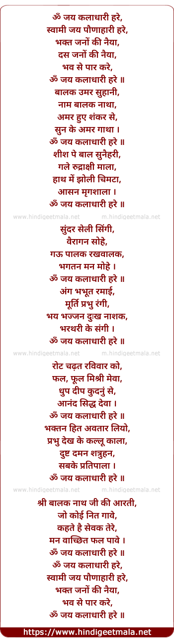 Lyrics of Om Jai Kaladhari Hare