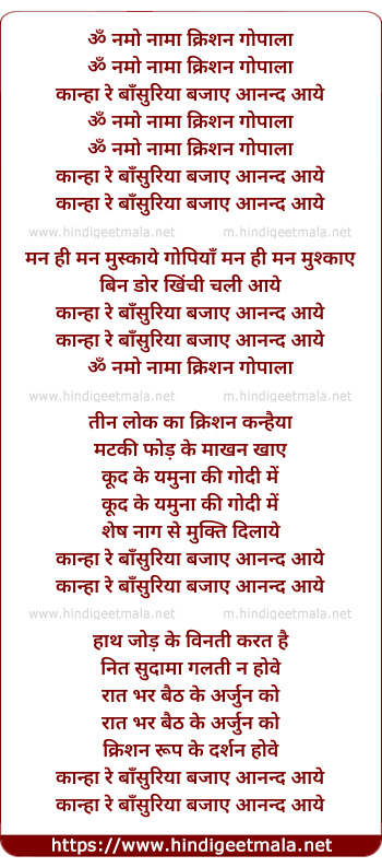 Lyrics of Om Namo Namah Krishan Gopala - ॐ नमो नामा क्रिशन गोपाला