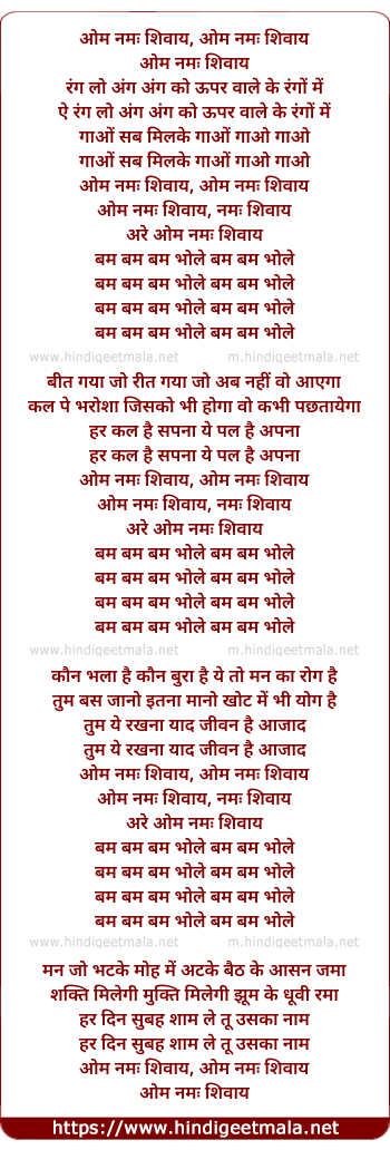Lyrics of Om Namo Shivay - ओम नमः शिवाय