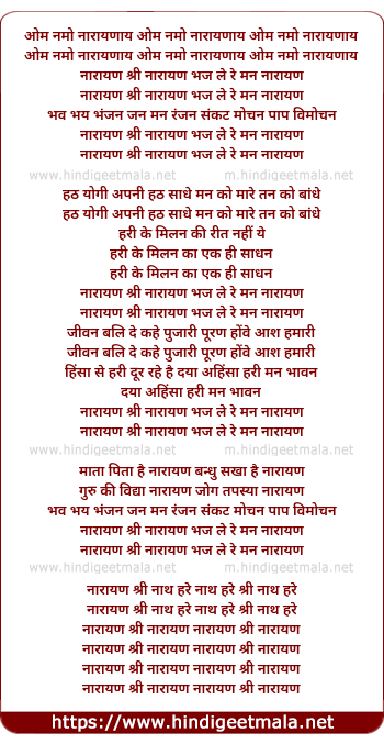 narayan shri narayan bhaj le re man narayan
