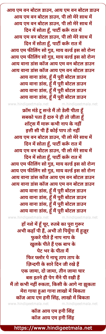 Poetic Translation - Lyrics of One Bottle Down - आय एम वन बोटल डाउन, आय एम वन बोटल डाउन