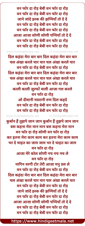 Lyrics of One For The Road - वन फॉर दा रोड़ बेबी वन फॉर दा रोड़