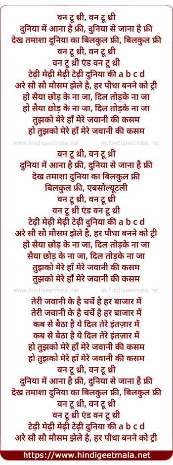 Poetic Translation - Lyrics of One Two Three, One Two Three - वन टू थ्री, वन टू थ्री