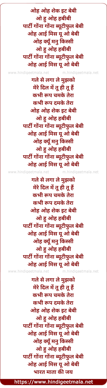 Lyrics of Ooh Ooh Shake It Baby - ओह ओह शेक इट बेबी