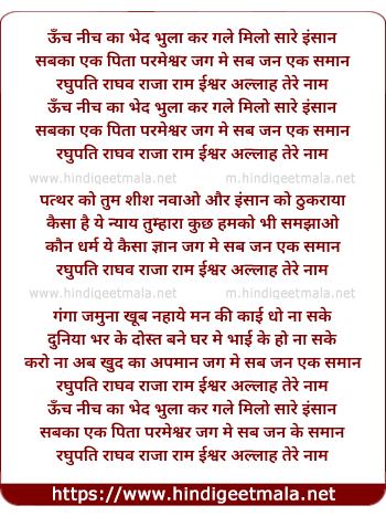 Lyrics of Oonch Nich Ka Bhed Bhula Kar - ऊँच नीच का भेद भुला कर