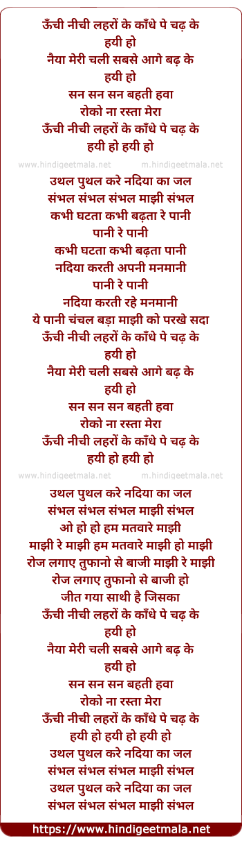 Lyrics of Oonchi Nichi Lehero Ke Kandhe Par - ऊँची नीची लहरों के काँधे पे