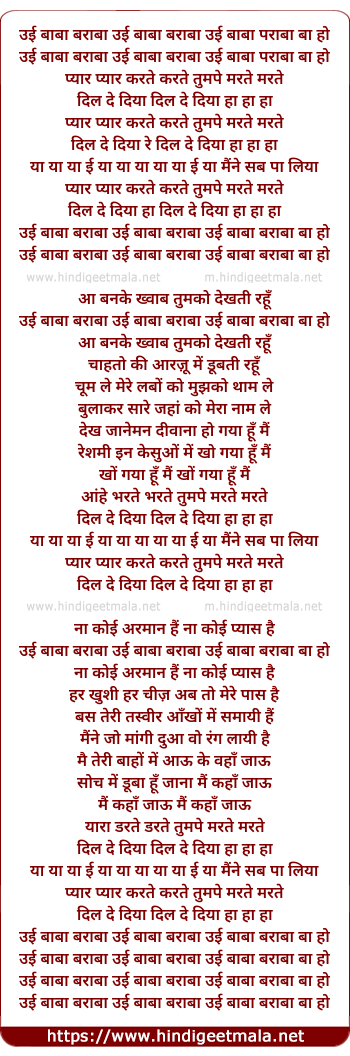 Lyrics of Oye Baba Parabba, Oye Baba Parabba - उई बाबा बराबा उई बाबा