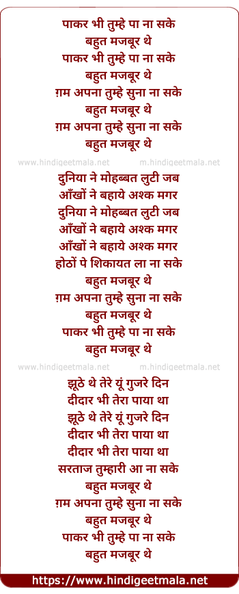 Lyrics of Paakar Bhi Tumhe Hum - पाकर भी तुम्हे पा ना सके