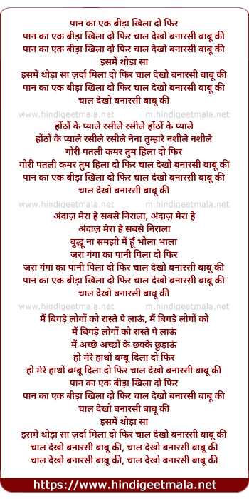 Lyrics of Paan Ka Ek Bida, Phir Chaal Dekho Banarasi Babu Ki - पान का एक बीड़ा, फिर चाल देखो बनारसी बाबू की
