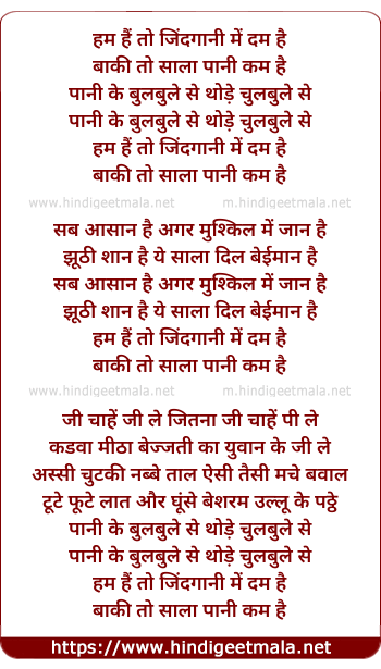 Lyrics of Paani Ke Bulbule Se - पानी के बुलबुले से