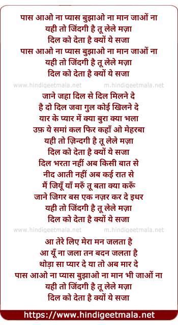Lyrics of Paas Aao Naa - पास आओ ना