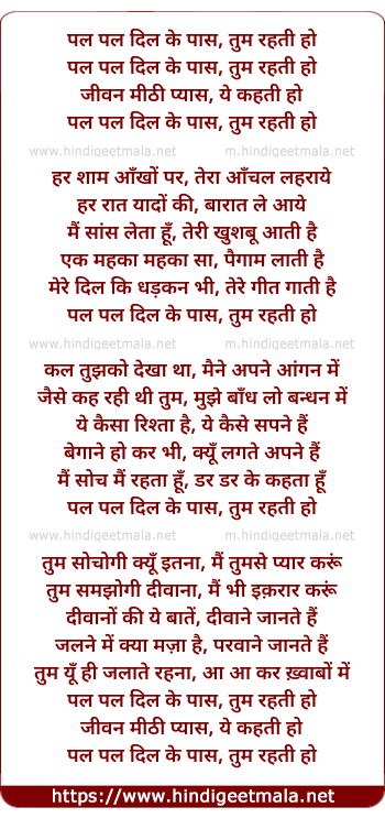 Lyrics of Pal Pal Dil Ke Paas, Tum Rahti Ho - पल पल दिल के पास, तुम रहती हो