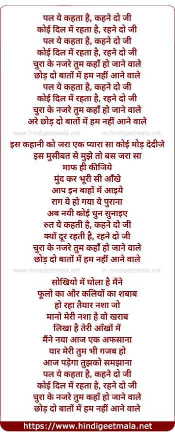 Lyrics of Pal Ye Kehta Hai - पल ये कहता है