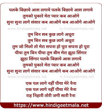 Palke Bichaye Aas Lagaye Tumko Pukare Mera Pyar - पलके बिछाये आस लगाये तुमको पुकारे मेरा प्यार