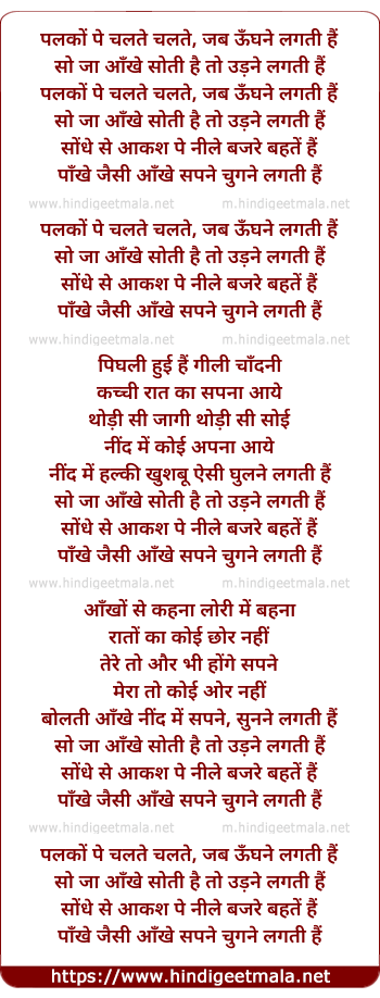 Lyrics of Palkon Pe Chalte Chalte (Female) - पलकों पे चलते चलते, जब ऊँघने लगती हैं