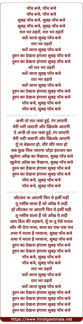 Lyrics of Panch Baje (Female) - पाँच बजे, पाँच बजे