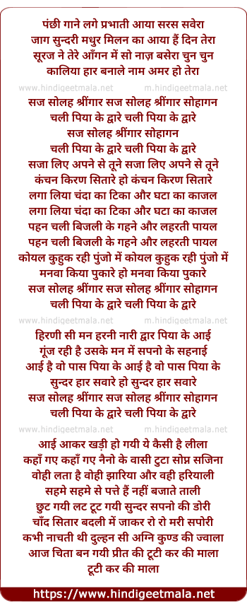 Lyrics of Panchhi Gane Lage - पंछी गाने लगे
